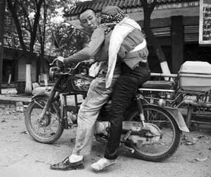 15日,英國《每日電訊報(bào)》刊登了一組圖片,記錄下中國抗震救災(zāi)過程中的一個個感人瞬間。在一張圖片上,一個在地震中痛失妻子的男子,用繩子將妻子的尸體綁在背部,送她去太平間。在極大悲痛的折磨中,他努力要給妻子些許死后的尊嚴(yán)。因此,他飽含深情,將她的身體與自己綁在一起———然后用摩托車載著她前往當(dāng)?shù)氐奶介g。英國媒體稱,這是大毀滅后存在的人性象征。