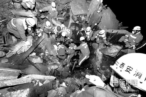 時間在一分一秒地流逝。坍塌的整棟樓房屬框架結構,消防官兵在實施救援的過程中,由于操作面小,整個生命通道就像一個手電筒,頭大腳小,開始可以由五個人同時作業(yè),慢慢地只能容三人作業(yè),后來只能由一個瘦小的戰(zhàn)士爬著向里掘,清理碎石和瓦礫。
