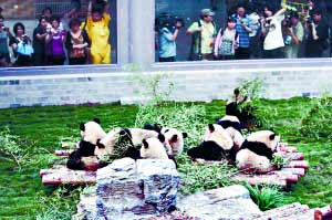 記者還了解到:昨天傍晚,8只大熊貓到達(dá)北京動(dòng)物園時(shí),國(guó)內(nèi)外近百家媒體的記者和數(shù)百名游客夾道歡迎。