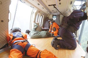 得到前線救援人員通過海事衛(wèi)星報(bào)告的消息后,27日下午,救援直升機(jī)冒著危險(xiǎn),在距地面10米的空中展開搜索!翱矗旅嬗腥擞埃 憋w機(jī)盤旋了很久,但因當(dāng)?shù)赜幸慌琶芗母邏壕,飛機(jī)無法降落,眼看大霧越來越濃,救援直升機(jī)只得返回廣漢機(jī)場(chǎng)待命。