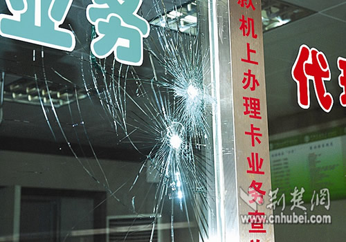 從現(xiàn)場情況看,有六塊防彈玻璃受損,大廳空調(diào)、查詢機、密碼器、叫號機、兩臺電腦以及大堂經(jīng)理辦公桌,全部被歹徒破壞,初步估算直接損失30余萬元。