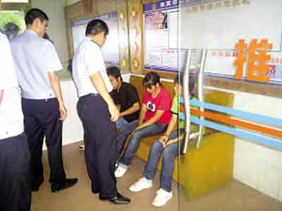 民警正在詢(xún)問(wèn)3名行騙者。楊子健攝