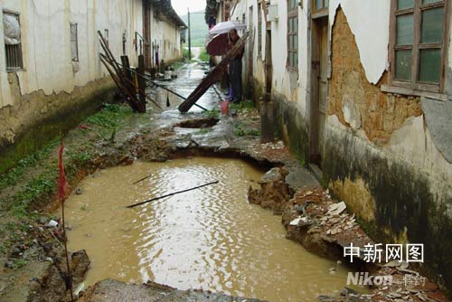 據(jù)村民反映,地面塌陷是從6月9日下午3點多鐘開始的,在村民劉細(xì)梅和劉河柱的家門前地面先出現(xiàn)一個小坑,后來逐漸變大變深。由于地面塌陷引起涉及5戶村民共8間民房受損,墻壁出現(xiàn)裂縫,大的裂縫約5厘米寬,一些房屋門窗嚴(yán)重變型,墻壁表層脫落,房門無法打開,有的房間村民用東西敲擊地板時,地面顫動,有地下空洞的感覺。