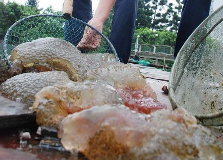 湖中冒出不少有點(diǎn)像水母的不明物體,每個(gè)幾十公斤重,在水里是灰色的,撈上岸變得果凍狀,再過(guò)幾天化成一灘水?它們究竟是啥,連生物學(xué)專家也被考倒了。