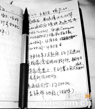 國家林業(yè)局鎮(zhèn)坪專家組筆錄周正龍等發(fā)現(xiàn)老虎腳印,周拍攝下記錄信息。
