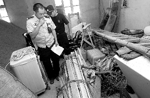 曲山鎮(zhèn)一戶姓徐的居民住在半山坡上,家里兩間板房剛剛搭好。其中一間屋子里堆了5個電視,3個電腦,屋外還有3個大冰箱。一些居民家的豬圈、菜地里也放有大件的家具以及電器。景家村村委會的工作人員講,這些物品很可能是居民深夜進入北川縣城運回來的,景家村有200余戶居民,目前查明僅有10幾家有不明來源物品。