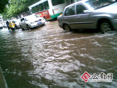 7月1日晚至今天的昆明持續(xù)暴雨,大雨再次挑戰(zhàn)昆明排水系統(tǒng),全城不同程度遭水淹,最深處已超過1米。很多早起上班上學的市民只能涉水“過河”,而車輛只能在水中“游泳”。今日凌晨,本網手機報彩信平臺陸續(xù)收到了熱心市民拍攝的現場圖片近百張。此次大雨淹城,距上次昆明因強降雨造成水患僅隔半個月時間。據省氣象臺預報,未來48小時昆明還降普降小雨到大雨,積水在短時間內還將持續(xù),請市民提前做好出行安排。