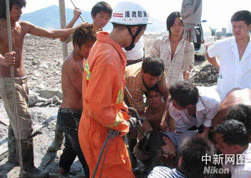 據(jù)消防人員介紹,鋼筋有9米長,躥出地面2米高,埋在地面下的還有7米左右的深度。露出部分已從這名工人的右眼穿透頭顱。工人的安全帽高高掛在鋼筋上,該工人的右眼球已脫落下來掛在臉龐上!爱敃r他的呼吸一陣又一陣的很急促!