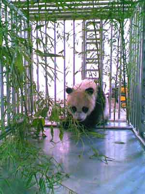 可能有生命危險(xiǎn)。工作人員講:它現(xiàn)在不進(jìn)食的原因一方面是習(xí)慣了野生狀態(tài),另一方面是在人們捕救它時(shí)受到了驚嚇。為了緩解熊貓的緊張情緒,工作人員一方面使用藥物讓其精神放松,一方面在它的籠子里放竹子,模擬野生環(huán)境,希望它能盡快進(jìn)食,但收效甚微。