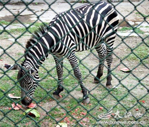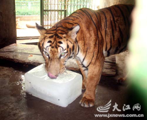 16日,記者在南昌市動(dòng)物園看到,老虎正抱著大冰塊睡著大覺!疤鞖馓珶幔覀兠刻於家慕600公斤冰塊為5只老虎降溫。3只大象每餐也要吃掉約75公斤西瓜!憋曫B(yǎng)員告訴記者。記者看到,河馬喜歡泡在水池里,熊貓則躲在空調(diào)房里愜意地打著盹,大象、斑馬忙著啃西瓜。