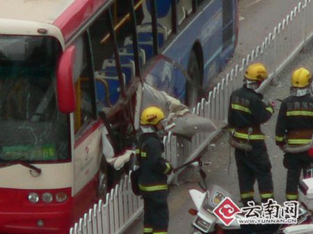 今晨7點(diǎn)零5分左右,一輛公交車在昆明市人民西路潘家灣附近發(fā)生爆炸。目擊者稱發(fā)生爆炸時(shí)聲音巨響,汽車玻璃被震碎,有人員受傷,現(xiàn)場一度混亂。目前,公安消防等部門已經(jīng)趕到現(xiàn)場進(jìn)行處理,并實(shí)施交通管制。云南網(wǎng)記者和春城晚報(bào)記者已趕到現(xiàn)場。