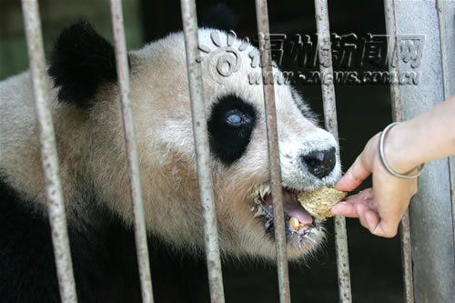 陳玉村介紹,“07”號(hào)大熊貓的檢查報(bào)告讓人們對(duì)它的健康狀況更加擔(dān)憂,“專家可能先給它作眼科手術(shù),目前我們先治它的眼睛潰瘍,之后,分別給它的眼睛動(dòng)手術(shù)。現(xiàn)在正用中藥對(duì)它進(jìn)行先期治療,把中藥燉成湯,讓它當(dāng)水喝。因?yàn)橛兴幬叮?jīng)常不喝,工作人員就在里面放點(diǎn)它喜歡吃的食物哄它喝一點(diǎn)”。
