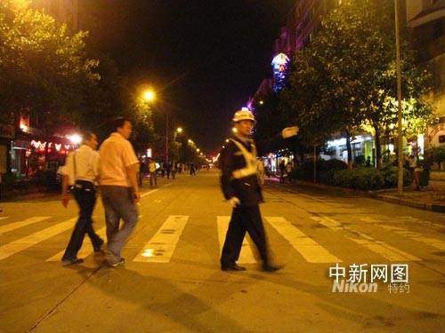 今晚八時許,在昆明城西交林路發(fā)現(xiàn)一可疑黑色箱包,昆明出動大批警力將現(xiàn)場封鎖。圖為交林路與人民西路路口交警在“斷交”。 王林 攝