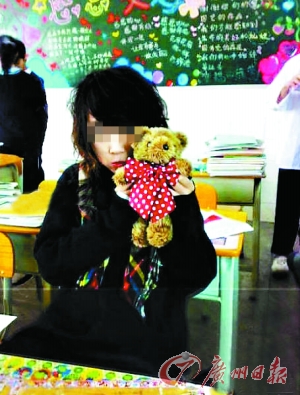 其中,富家女個(gè)人的多張照片是這名富家女舉著手機(jī)自拍的。照片中的富家女長頭發(fā),看上去比較年幼可愛。一張她抱著玩具熊的合影則是在教室中拍的,身后還有黑板報(bào)。