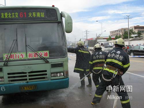 廣西南寧一公交車起火被消防員撲滅(圖)
