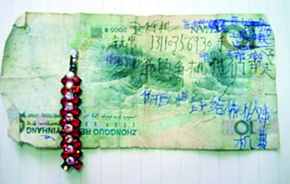 陜西省一女孩王某被“洗腦”后,以邀請(qǐng)母親來(lái)滕游玩為名,將母親賈某和9歲的弟弟騙至傳銷窩點(diǎn)。賈某急中生智,在拾元紙幣上寫(xiě)下求救信息,拋至窗外,在好心人和民警的幫助下,母子三人才得以解救。