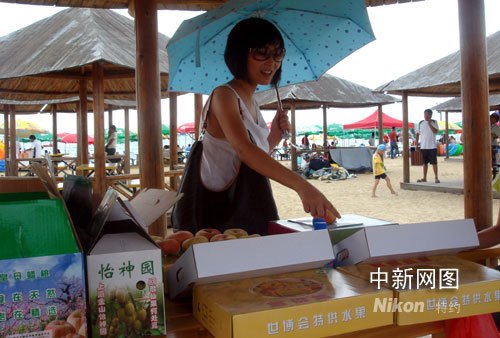 中新網(wǎng)上海八月七日電 (萬(wàn)軍)見(jiàn)過(guò)穿著比基尼的時(shí)尚男女沙灘上品蟠桃的逍遙情景嗎?這幾天里,在上海金山城市沙灘上,鼎鼎大名的“皇母”蟠桃成為沙灘男女的新寵,這種上海市面上也難得一見(jiàn)的世博會(huì)特供“蟠桃仙果”,這次與扎堆沙灘的時(shí)尚男女來(lái)了一次親密接觸。
