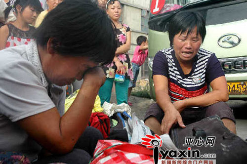 李志峰帶來(lái)的老鄉(xiāng)們坐在車前哭泣。