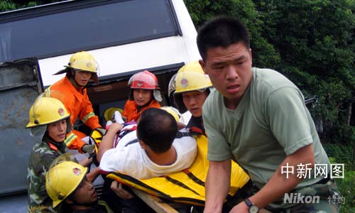 事后根據(jù)高速交警反映,出事客車上三十余名乘客中有七、八名乘客只是擦傷,已經(jīng)在附近醫(yī)院治療,并沒有大礙,而一名五十歲左右的中年婦女頭部受傷嚴重,還進一步搶救之中。