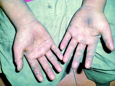 接下來的幾天,劉錫菊多次到這個(gè)修理部悄悄觀察小男孩。在炎熱的夏日里,男孩始終沒有歇過,也沒有見他喝一口水。男孩干活時(shí),始終有一名成年男子在一旁看著。鄰居們說,這名男子就是修理部老板,有的時(shí)候,他們覺得男孩可憐,想給他點(diǎn)兒吃的東西,但是男孩因害怕被老板打不敢要。