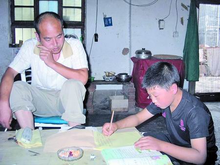 返鄉(xiāng)后,父親常常陪著小習(xí)廣復(fù)習(xí)功課。