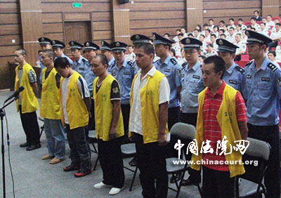 九江市中級人民法院院長陳堅親自擔任審判長主審該案。吳曉劍、任忠杰、王曉海、楊曉大、吳曉安、劉曉剛等六名被告人涉嫌三項罪名出庭受審。被害人許俊谷景的母親到庭參加訴訟。許俊谷景的部分親友、生前所在單位的同事、海軍后勤部九江基地官兵及社會各界三百余名群眾到庭旁聽了案件的審理。