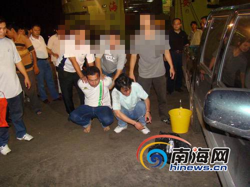 在秀英碼頭,海口警方抓獲兩名犯罪嫌疑人(圖片由?谑泄簿痔峁