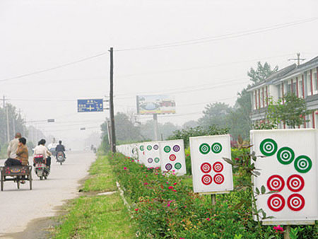 “見過門牌號,但像這樣的門牌標志還真是少見!弊蛉,蔡女士在河北趙縣看到許多“麻將”形狀的燈箱后說。這些燈箱位于趙縣通往趙州鎮(zhèn)的一條小公路旁,引起了路人極大的興趣。