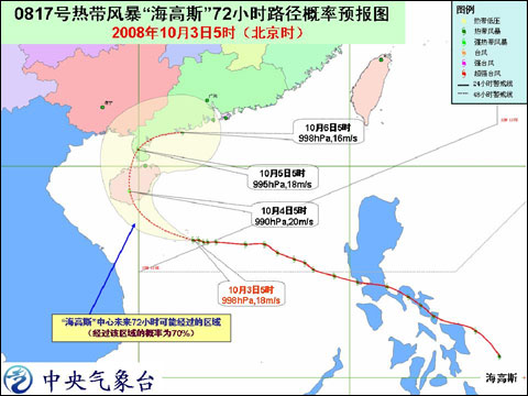 中央氣象臺2008年10月3日6時發(fā)布臺風消息: