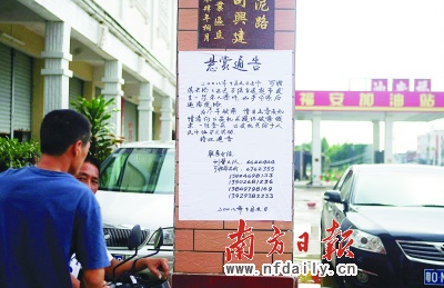 昨日,當?shù)鼐皆谑掳l(fā)超市旁的牌坊等地張貼出“懸賞通告”,請目擊者或知情人提供破案線索,查實后將給予5萬元的獎勵。