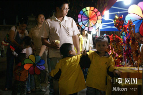 登山前孩子們在“狗仔墟”選購風(fēng)車。