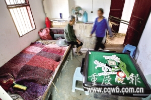 近來(lái),璧山縣三合鎮(zhèn)石龍村五保家園敬老院的老人們?cè)孤暡粩啵郝閷⒙曉谠豪锎似鸨寺,牌客玩得興起時(shí)還扯起嗓子吆喝幾聲!澳X殼都要炸了,想睡個(gè)安穩(wěn)午覺(jué)都不行!”66歲的許顯義聞聲把門(mén)關(guān)緊。他隔壁是另一個(gè)老人的住房,麻將桌就擺在床邊。