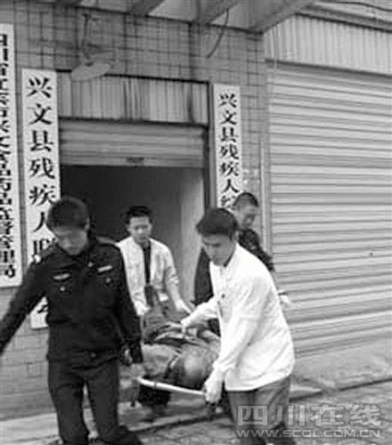 興文縣公安局副局長文武介紹,10日上午9時許,當?shù)鼐浇拥饺罕妶缶Q:有人在縣城某局6樓辦公室殺人。接報后,文武等趕赴現(xiàn)場。當踢開緊閉的辦公室門后,發(fā)現(xiàn)一男一女躺在血泊中,女的已經(jīng)死亡,男的奄奄一息,距男的不遠處地上,有一把約30厘米長的剔骨刀。警方當即將奄奄一息的男子送往該縣醫(yī)院救治,當日中午12時許,該男子經(jīng)搶救無效死亡。