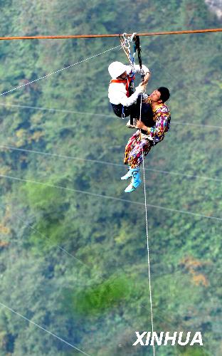 新疆"達瓦孜"傳人張家界挑戰(zhàn)極限坡度"失手"(圖)
