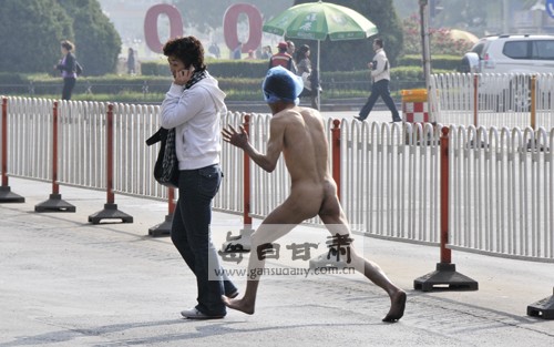 10月21日上午10時(shí)28分,在(蘭州)東方紅廣場(chǎng)至廣場(chǎng)西口一帶,一名30多歲渾身赤裸的瘋癲男子一會(huì)追逐過(guò)往行人,一會(huì)追逐駛過(guò)的車(chē)輛,一名年輕女子在遭其騷擾后嚇得失聲大哭。直到上午11時(shí)許,廣武門(mén)派出所民警接警趕到現(xiàn)場(chǎng)后,這一出鬧劇才得以收?qǐng)觥?