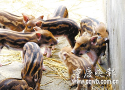 過上一個多月,雜交豬身上的條紋越來越粗,像斑馬一樣。市自然博物館動物專家胥執(zhí)清分析認(rèn)為,等這批小豬長大之后,條紋又會消失,變成普通的淺黑色。為什么會出現(xiàn)這種毛色變化?胥老師認(rèn)為,家豬和野豬都有某種毛色隱性基因,兩者近親結(jié)婚碰到一起后,隱性基因顯現(xiàn)出來,就出現(xiàn)條紋。胥老師認(rèn)為這種雜交豬,仍然應(yīng)該叫野豬。 (劉邦云)