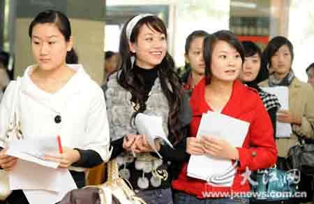 在南昌航空大學(xué)就讀的一位大四學(xué)生告訴記者,此次連自己共有6人來面試,但目前只有兩人進(jìn)入復(fù)試,其余4人就是卡在英語關(guān)和反應(yīng)能力的考驗(yàn)上。記者在現(xiàn)場(chǎng)看到,進(jìn)入面試的應(yīng)聘美女在填寫個(gè)人簡(jiǎn)歷時(shí)也必須用英文。