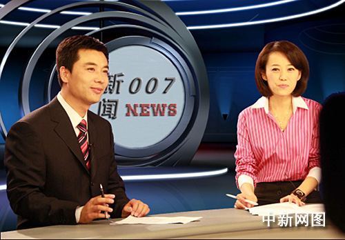 央視主持人郭志堅和《新聞007》主播彤瑤在試鏡。作者:邵郡