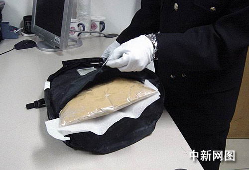 海關(guān)關(guān)員重新將目光鎖定在了那只空包上。經(jīng)過仔細檢查,關(guān)員發(fā)現(xiàn)背包連接背帶的部位顯得有些厚重,拿探針往里面一刺,流出了一些白色粉末。包里有夾層!拆開夾層,海關(guān)關(guān)員看到了那片神秘的綠色陰影——一大塊用牛皮紙和塑膠封帶層層包裹的紙包,現(xiàn)場快速檢測的結(jié)果顯示,紙包內(nèi)的白色粉末呈現(xiàn)毒品陽性反應(yīng)。26日,經(jīng)浙江省公安廳物證中心檢測鑒定,白色粉末正是毒品海洛因,重1253克。