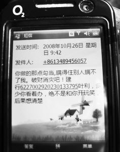 “就你做的那點勾當(dāng),瞞得住別人瞞不住我。破財消災(zāi)吧。錢多少你看著辦,絕不是和你開玩笑,后果你想清楚!賬號******葉利。”收到這樣的短信,你會中騙子的圈套嗎?26日,市民張先生就收到這樣一條敲詐短信。