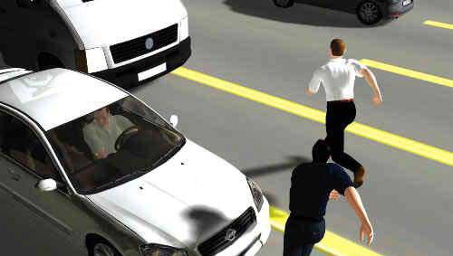 據(jù)轎車司機馮先生稱,當時他正行駛在靠中間綠化帶的小客車車道上!爱敃r車輛很多,我開得并不快。突然,車輛左前方跑過一名拿著警棍的男子,我緊急剎車還是把他撞倒了,隨后一旁車道的一輛中型貨車剎車不及把他壓在車輪下!薄翱此袷窃谧汾s什么人,而且跑得很快,甩出來的警棍把我的車前窗擋風玻璃都撞裂了!瘪T先生說。