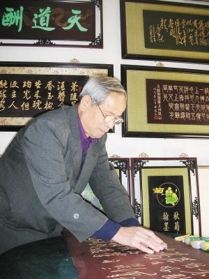 69歲的退休工程師劉佐忠,在兩間十多平方米的小屋里,展出100多件自己親手制作的民間工藝美術(shù)作品,令參觀者拍手稱奇。老人掌握金屬工藝畫、堆錦畫、鐵畫、金絲沙畫、電烙畫、木雕、楊柳青年畫、木皮畫、貝雕、木刻、羽毛畫、電燙畫等22項民間工藝美術(shù)絕活,有的工藝已經(jīng)瀕臨失傳。