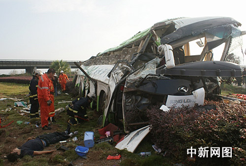 中新網(wǎng)溫州11月12日電(記者 江耘 通訊員 鄭國前)11月12日上午7時30分,浙江溫州發(fā)生一交通事故,一輛湖南牌照的旅游大客車,行駛至金麗溫高速公路溫州段,在南白象出口匝道出,撞壞了50多米護欄后,從6米多高的橋面翻落到地面上,翻了個身后,立在了高架橋下的綠化帶里。事故共造成2人死亡,17人受傷。