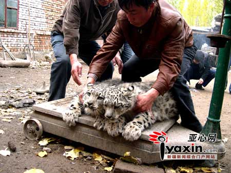 伊寧縣喀拉亞尕奇村牧民張培偉,今年5月10日,在山區(qū)放牧?xí)r撿回一對(duì)酷似草原斑貓的兩只小動(dòng)物,并把這對(duì)“草原斑貓”帶回家,當(dāng)成寵物飼養(yǎng),沒想到這兩只“斑貓”越長(zhǎng)越像豹子。后經(jīng)專家認(rèn)定是國(guó)家一級(jí)保護(hù)動(dòng)物——雪豹。如今這一雄一雌雪豹體重已達(dá)15公斤,每天需4-5公斤鮮肉喂養(yǎng),救助者張培偉已難承擔(dān)雪豹的“伙食”供應(yīng)。但是雪豹作為國(guó)家保護(hù)的珍稀野生動(dòng)物,既不能出售,又不宜放歸自然,加之在本地也沒有合適的救護(hù)地,只能由他繼續(xù)養(yǎng)護(hù)著,如今,越養(yǎng)越大的雪豹如一個(gè)燙手的山芋,讓張培偉陷入進(jìn)退兩難的境地。