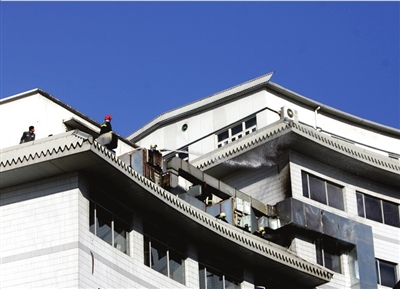 昨天上午9點(diǎn)40分,大廈院外仍停著數(shù)輛警車和消防車,保安阻止無關(guān)人員進(jìn)入院內(nèi),百余人站在中天石酒店大堂和院子內(nèi),酒店大堂還有較重焦煳味。大廈一層中部一間屋子外墻被熏黑,現(xiàn)場已無明火。院內(nèi)垃圾站一員工稱,西客站郵件處理中心一層廚房著火,火苗竄出屋外并燒至煙道。