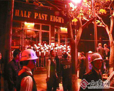 昨天凌晨,一伙不明身份的男子在昆明市寶善街“八點半”酒吧門口聚集許久后,和從酒吧內(nèi)沖出的另一伙人發(fā)生沖突,現(xiàn)場一度十分混亂。昆明市公安局緊急出動百余警力,短時間內(nèi)平息了此次群毆,同時帶回15人進行調(diào)查。