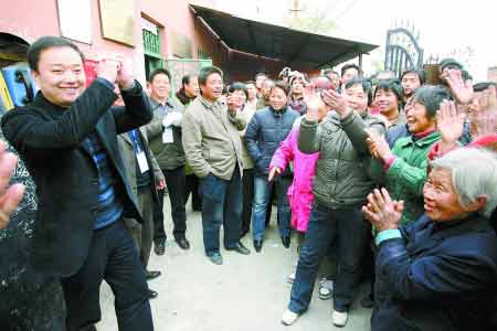 前天上午11時(shí)許,鄭州市溝趙辦事處牛寨村委會(huì)門口,村民們踮起腳尖,看新當(dāng)選的村主任長(zhǎng)啥模樣。