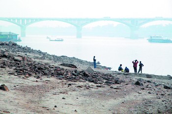 昨日,數(shù)位市名在干涸的湘江河灘上玩耍,目前,湘江長沙段水位已跌破26米,如近期上游雨量不足將逼近歷史最低水位。余志雄攝