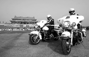 昨日上午,北京市交管局東城交通支隊(duì)帥府園交通隊(duì)三名交警,騎著嶄新的哈雷警用摩托車,開(kāi)入天安門廣場(chǎng)周邊道路。當(dāng)日起,天安門地區(qū)交警開(kāi)始騎哈雷巡邏。