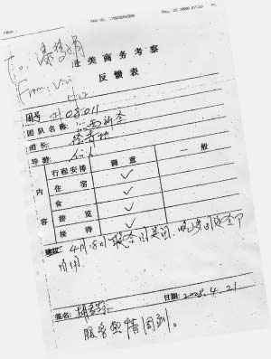 新余考察團在《意見反饋表》上稱“服務熱情周到”。